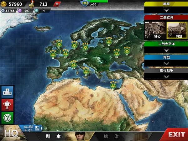 每关除了普通难度还有困难难度,从二战欧洲到冷战的困难关卡分别能获得2640、2700、2880勋章,现代我还没打,困难关好像是能获得3780勋章。