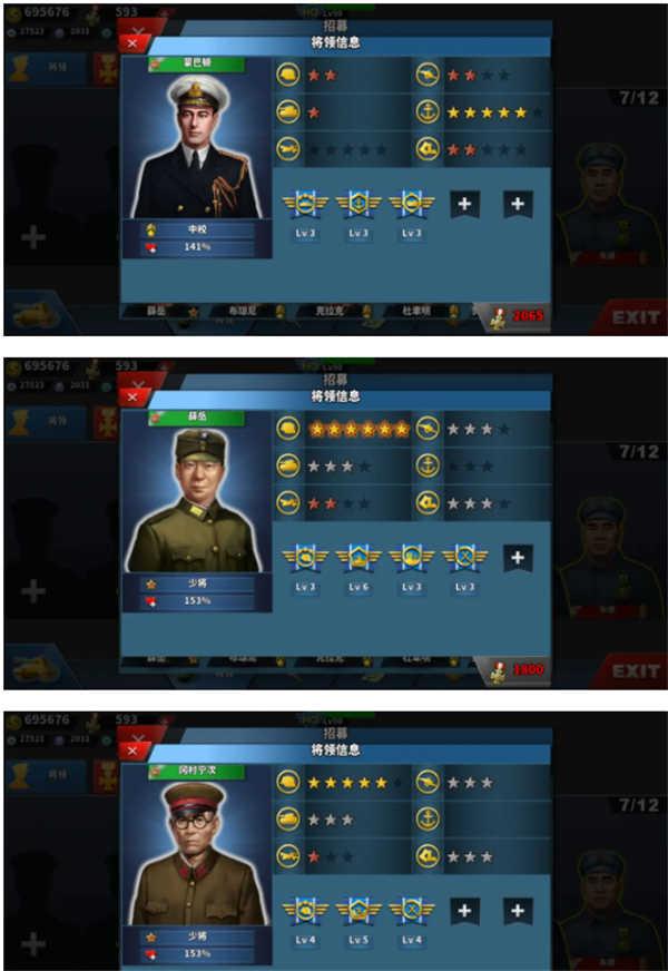此外还有下面的这些将,虽然后期肯定要换,但是因为解雇可以还你在该将领上花的80%的勋章,所以你如果真想买的话前中期也是可以买来用的,能力还行