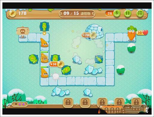 保卫萝卜2第60关我们再次面对怪物 老窝堡垒,依然选择控制好场上的小怪,再对怪物堡垒进行狂轰滥炸!瓶子炮依然是我们攻击堡垒最好的选择!!