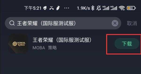 卸载其他渠道下载的游戏安装包,从奇游端内搜索【王者荣耀(国际服测试服)】进行下载