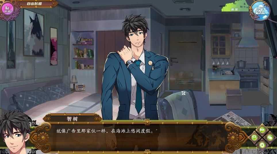 刚开始进入游戏时,可以点击屏幕或者按快进键,迅速略过剧情描述,直接选择银行工作的目标地,到达自由时间的阶段,当选择了目标地时,流程中和游戏里面的人物对话。