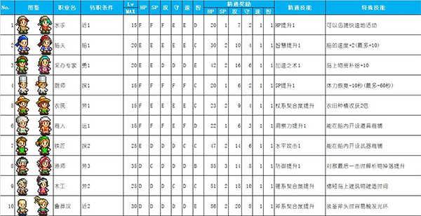 除了这两种职业,推荐的还有木匠,航海家,厨师之类的,价钱很可观,可以物尽其用。我认为需要注意的是,大家最好不要选商人、铁匠这种开店的角色,一是因为前期金钱和金币点数都比较少,花大钱买低星级的开店角色实在是太浪费了,还不如多买点建筑或者环境来获得知识。二是因为这些职业都会在后期冒险任务中刷出来,而且星级都很高,总体效果比前期买要好。三是各种角色满点之后都可以选择转职,商人铁匠就都可以用水手来转,毕竟水手便宜嘛,速度也快,后期用不着过多的跑堂人员,直接把水手转成开店人员就好啦!