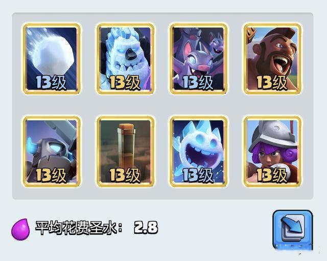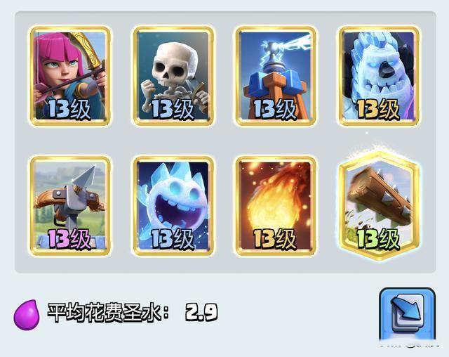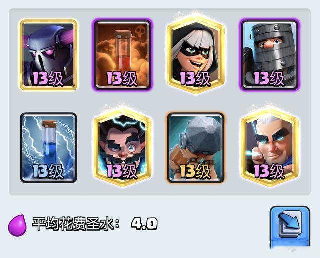 卡组优势:均衡型卡组,圣水消耗低,下兵节奏快,阵容转换时间短;攻守能力均衡,但都不突出;对时机把握、操作水平要求较低。