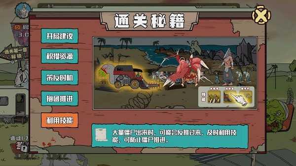 若出现大量僵尸、强力僵尸时,可能会反推回来,及时利用技能铲除僵尸,缓解防御压力,防止僵尸推进。