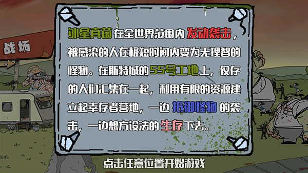 1、从本站下载并安装建筑工大战僵尸,打开进入根据页面文字点击任意位置,开始游戏。