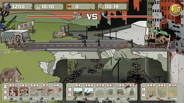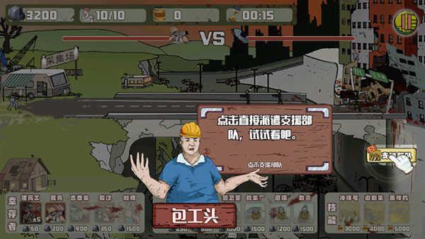 1、玩家可以生产厂房增加人口上限,可以招募工人、火枪队、冲击车来对抗僵尸。