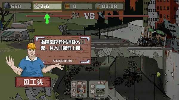 在下面中分别显示的是双方基地血量,派遣幸存者开始进攻吧。