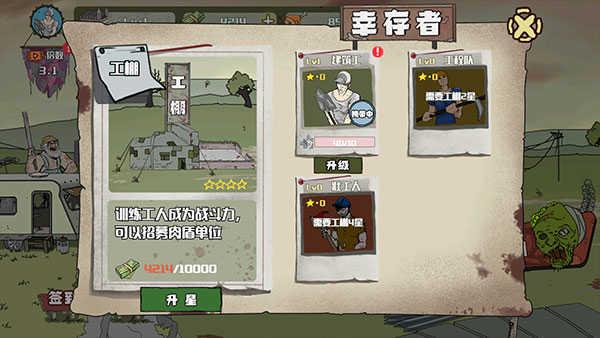 在玩家挑战成功后,可以返回工棚建筑升级幸存者。