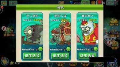 挑战模式中巨人危机和邪恶入侵选择植物挑战可以获得一定植物碎片。