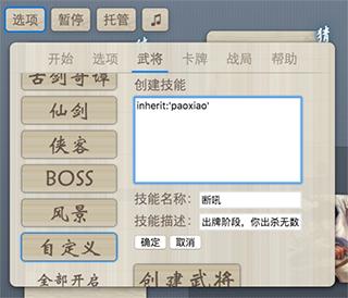 如:test:曹操;test:奸雄,在游戏中会显示为曹操及奸雄,但不会与其它命名为曹操的DIY造成冲突。