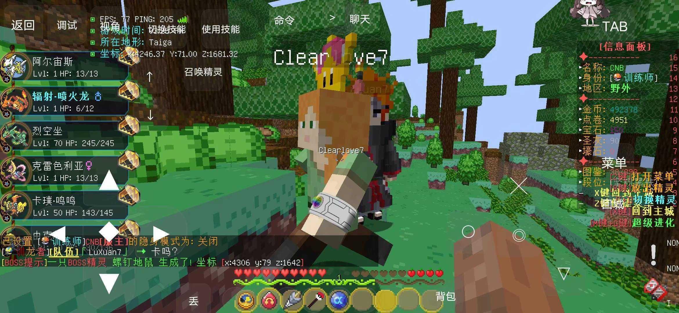 我的世界神奇宝贝重铸8.2.0是该模组的全新版本,在我的世界神奇宝贝重铸8.2.0游戏中,玩家可以享受到和原版不一样的操作,该版本是最经典的操作,像素风格的界面设计,通过自带键盘创建自己想要的神兽世界,快下载我的世界神奇宝贝重铸8.2.0试试吧!
