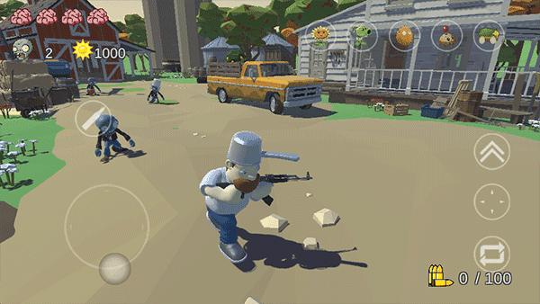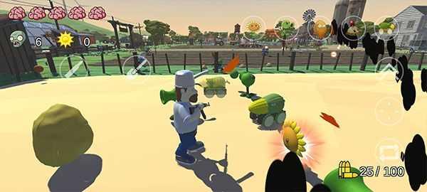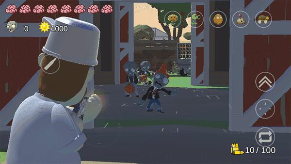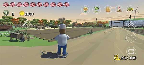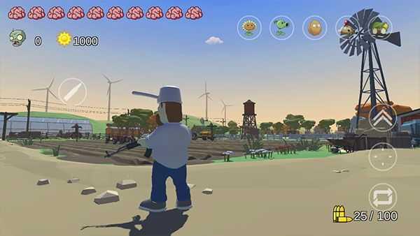 2、左上角的“大脑”是生命值,底部是目前已击杀的僵尸数量和阳光数,滑动右侧屏幕可以旋转视角,还有跳跃、瞄准以及换弹等快捷按钮。