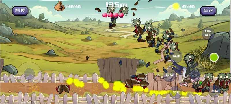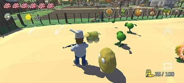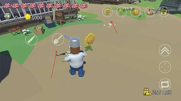 5、还可以利用手中的枪来攻击僵尸,天上会随机掉落阳光和弹药,靠近即可拾取。