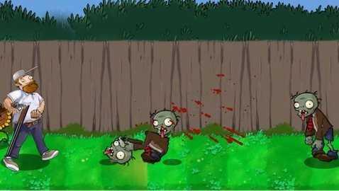 3、当僵尸靠近戴夫就会被吃掉脑子,图中可以看到戴夫当前的生命是4个脑子,每次被攻击消耗一个脑子,开始射击战斗!