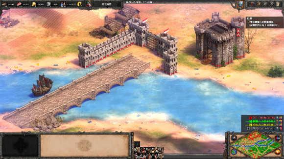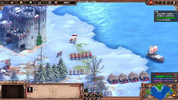 首先大家要让自己分到的农民出去建城门,主要要建两扇门,一个在右边的树林那里,另外的那个在河岸边的窄道那里。同时把那些射箭的兵放到右边的那个城门处去做防御。在建完了门之后,还要派农民出去种田,以及做一些采木材的活动。等到有食物之后,大家就能去把那些箭船给升级了,还要注意船的数量,最少要有十五只船。之后还要让农民去采石头,因为这时候大家要建城堡了,我们要在前面的围墙里面建四座城堡。等到大家的箭船造到了第十五只的时候,把前面的十二条船开往敌人的总部,也就是地图上右下角的位置,开船的时候记得别被敌方的箭塔打到。等我们的船到位之后,就能拦住对方的农民,让它们不能出去采黄金。再让我方的另外三条船去看住图上的另一块黄金地,反正只要让敌方的农民采不到它就是了。要是船只不够用的话,就接着造船就好了。在食物数量足够多的时候,记得要去给我方的各种物品升级。比如说那些奴隶兵,等到它们级别差不多之后,就能去巡逻了,其实就是去打敌方来此的攻城兵。要是碰到了条盾兵的话,可以选择把它们带回来用城堡来消灭他们。以及在这一关之中,大家还要建造一些巫师,它们的作用就是给奴隶兵回血的。因为本身造这种兵就要用掉很多的黄金,而大家的金子数量又没有那么多。为了效率,大家还是要建四个巫师来回血。