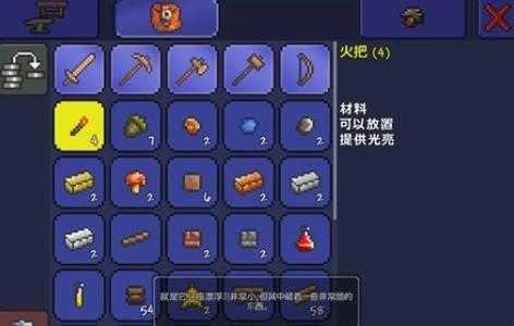 6、另一个有用的道具就是木门。门需要6块木头可提供房间进出的功能。友善的NPC用它可以自由进出房子,但敌人就不能(除了血月和哥布林入侵)。墙壁与地面需要间隔3格高(玩家的高度)以确保门有足够空间安装。用右键点选门以开关它。