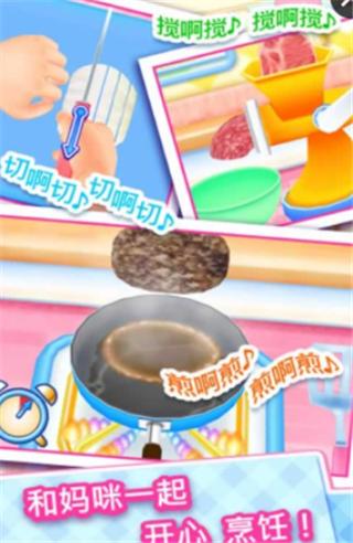 料理妈妈是通过玩小游戏制作出各种各种的料理的游戏,将煮,搅拌,切,等等的烹饪常用的技巧通过游戏表现出来。点击画面相应的食谱,就会进入食品的制作界面,这个时候只要点击相应步骤的画面就能进行厨房进行简单的操作了,然后找到要求完成即可,如果在烹饪的过程中失败了的话,还是重新再来。在操作的过程还会有简单明了的游戏箭头提示等等,无论是大人还是小朋友都能轻松玩转。
