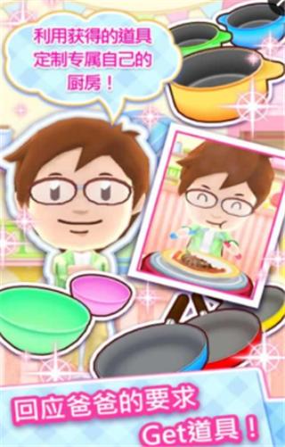 游戏充分考虑到移动端的操作便捷性,完全优化了烹饪部分的操作。通过根据手指操作而优化的输入方法和烹饪方法,无论何时何地玩家都能轻松烹饪料理。而且这并不是一个单纯制作料理的游戏,还有将制作的两个料理组合起来,如何合理进行料理的搭配、完成游戏内的爸爸的要求得到道具等等,充满了各种让玩家时时刻刻都想玩的丰富要素!