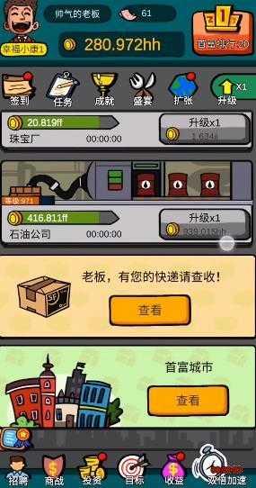 同时除了常规的经营玩法意外,游戏中还能对其他行业的大亨发起挑战,争夺项目逆袭人生,不断的突破你的极限,最终走向首富榜首,收购其他公司。