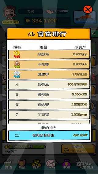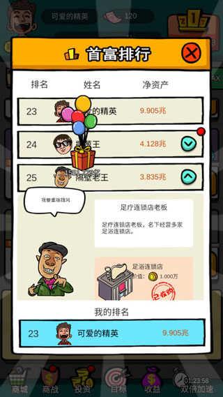 3、在富豪的朋友圈中提高自己的收益排名,不断的赚更多的钱,成为商界一大霸主