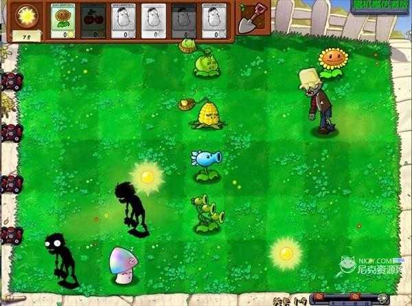 2、开始游戏,推荐种植在中方以免出现僵尸直接暴毙;