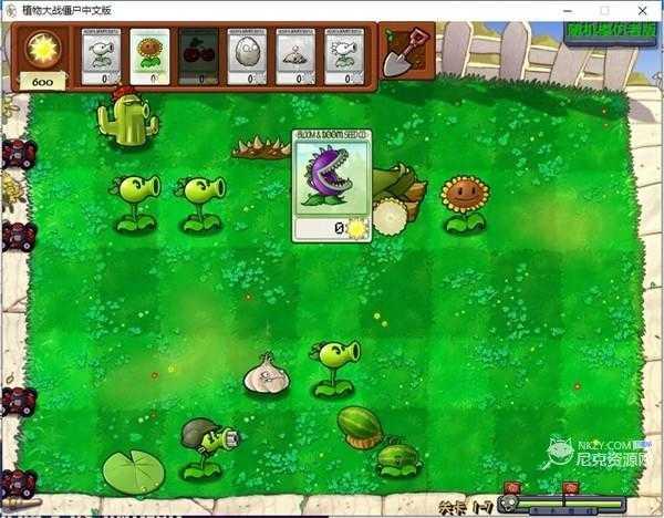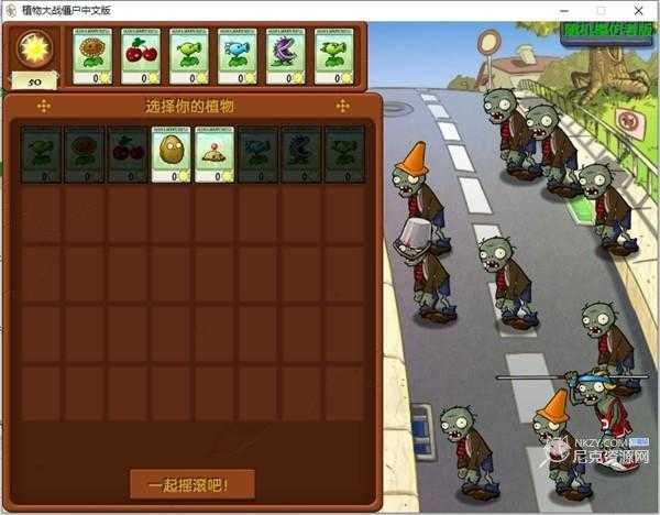 1、进入关卡,常规性的选择植物,必带向日葵和樱桃炸弹哦,其它无所谓,因为进入游戏都会变成模仿者;