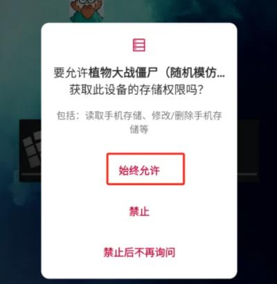 3、弹出储存权限,点击【始终允许】/【仅在游戏内允许】。
