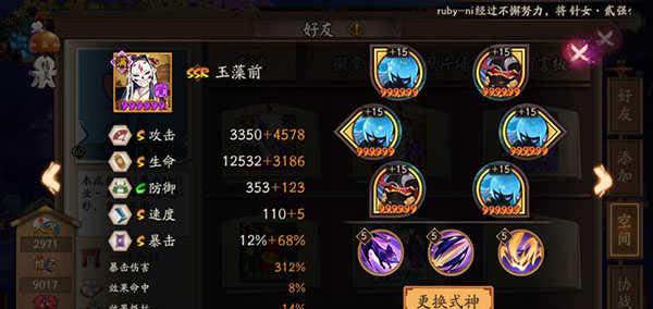 伤魂鸟套大家主力堆积攻击/暴击/爆伤三个属性即可,由于变身蛇的队友会继承大蛇的部分属性,此时达到85%暴击率就可以变成满爆,反堆爆伤更加简单。
