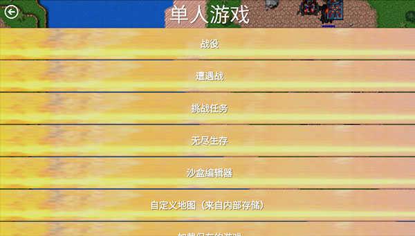 1、打开铁锈战争创星之世MOD最新版,首页有单人战役、多人游戏、设置、帮助以及模组。