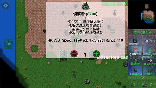 5、点击右侧可以添加一定数量的侦察者,能够透过迷雾看得更远,还能够在水面上移动,最重要的是可以攻击空中和地面单位。