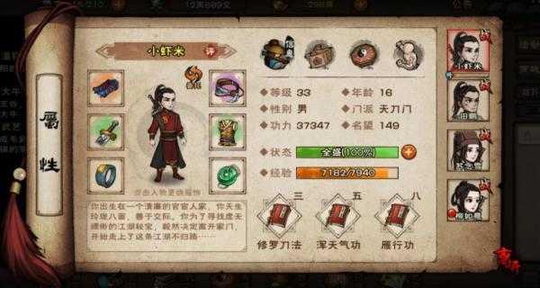 作为一位新登场的伙伴角色,丐武圣据闻是中原一大丐帮的九袋长老,他可以劫富济贫来获取元宝,也可以探取变卖各大派武书来获得银两。