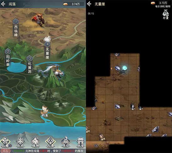 2、关卡在闯荡中可以产出大量的资源材料与基础装备,以满足的日常消耗需求,探索战斗地图需要消耗食物,为提高产出效率,在探索路线的处理上需要仔细规划,当达到分神期前,闯荡受益有限,且装备产出几乎无差,不用投入大量时间刷满次数,分神期购买分神术后即可出窍挂机扫荡。