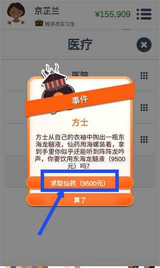 点击方士后,会触发事件,方士从衣袖中掏出一瓶药,不过需要购买,点击求取购买。