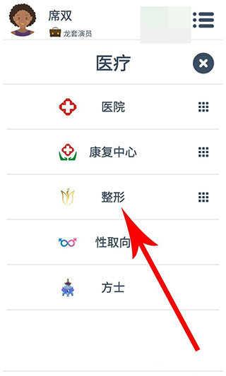 3、接着在“医疗”列表中找到“整形”按钮并点击