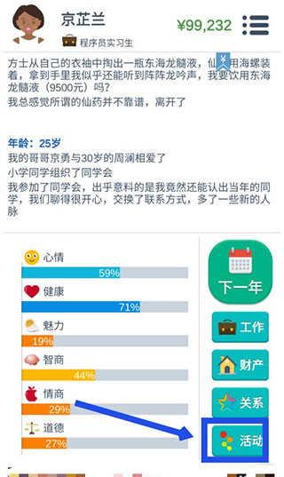 7、18岁以后,玩家还可以点击活动,参与更多的活动项目来丰富自身的生活。