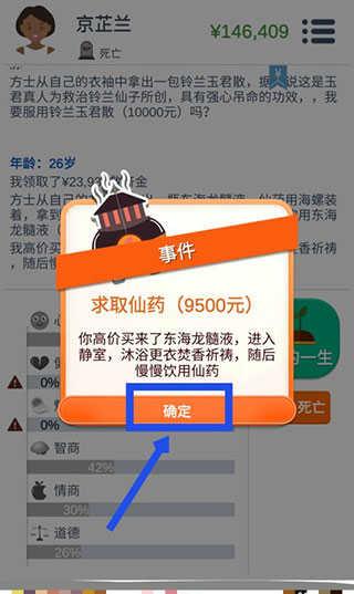 购买成功后,会弹出个事件窗口,沐浴更衣后,你慢慢饮用了仙药。