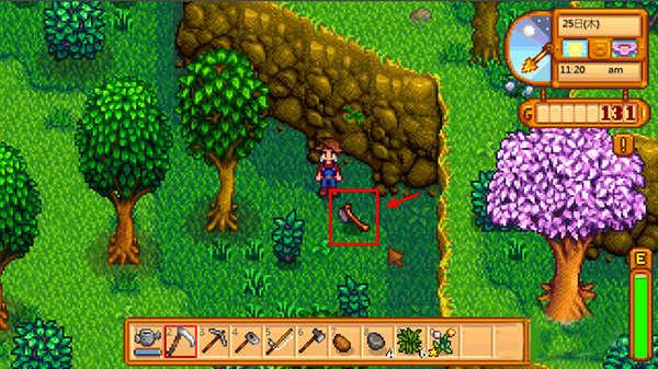 4、斧头其实是在玛尔妮农场的南边。下图已经标明位置了,箭头是行走方向。