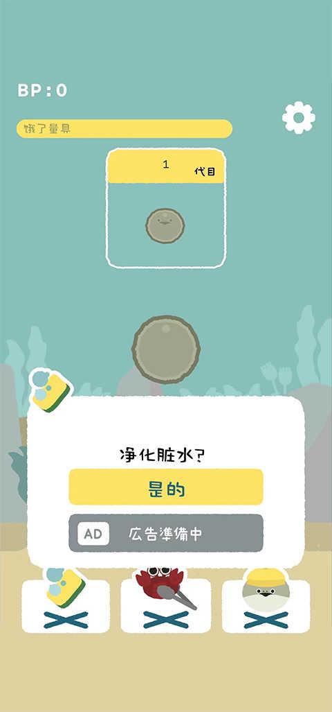 1、游戏一开始内,我们获得的是虚无鱼BasPi的鱼卵状态,这个时候只要净化脏水就好了,接下来就是耐心等待它孵化