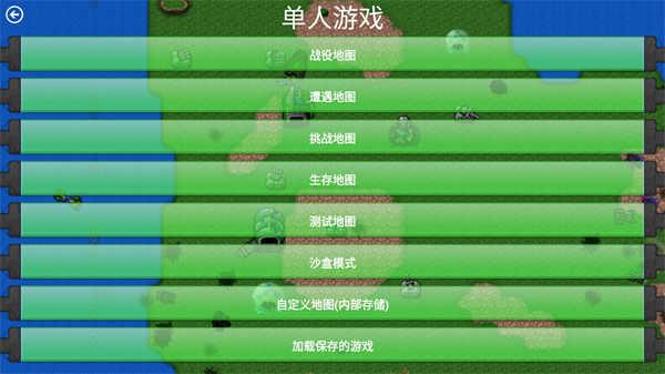 地图的陆地大小,海域大小,岩浆,地形等因素均会影响各种兵种的发挥能力。地图类型主要有这几种: