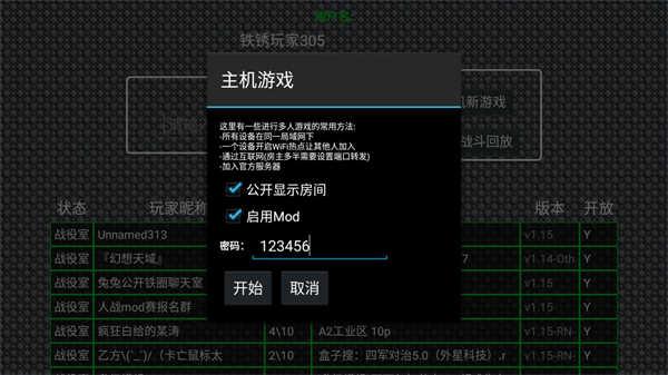 3、如果自己创建房间的话,点击主机新游戏,输入密码点击开始。