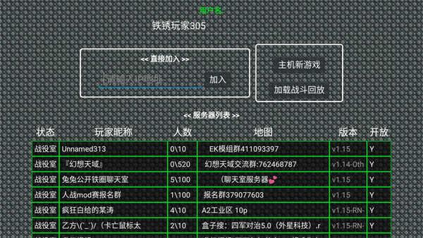 2、可以输入ip地址直接加入,也可以在列表中找房间加入。