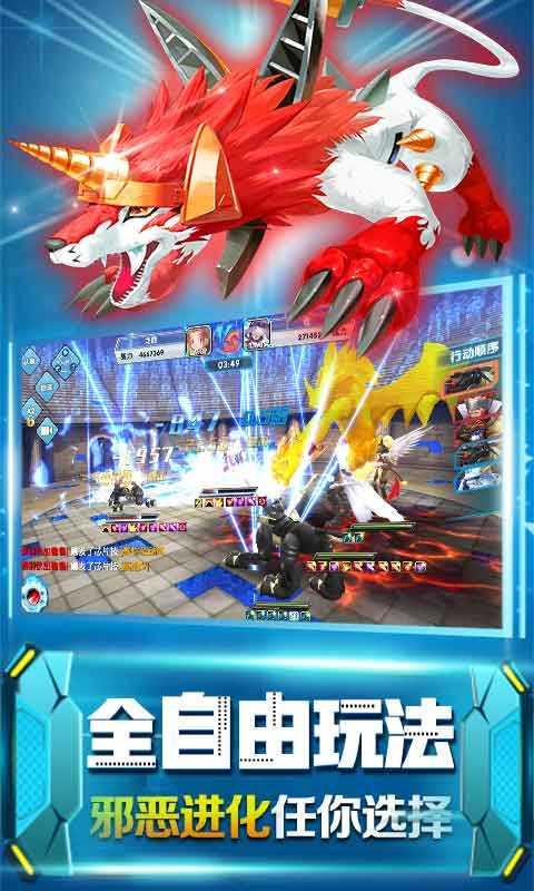 究极进化满v版是一款以数码宝贝为题材精心打造的养成类游戏,究极进化满v版中为你带来各种你所熟知的人气数码宝贝,按照精灵图鉴开始收集,组合你的最强阵容,游戏画风十分精美,支持多人对战,海量福利上线就送,感兴趣的快来下载究极进化满v版吧!