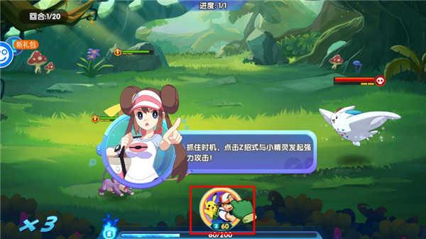 4、如下图所示,玩家们可带领自己的宝可梦精灵进行战斗;