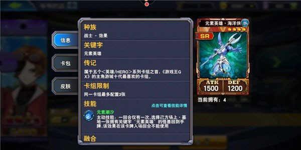 一技能:一回合一次,入场后,从卡组把一张〈融合加入手牌〉(融合是元素英雄卡组不可或缺的核心卡,有这张卡融合上手率太太提升)
