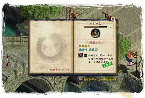 8、带着芷若去大理下棋(不带胡裴下是因为这货下棋太厉害,棋艺九级你都下不过他),悟性6以后开始卡BUG洗澡学身上秘籍(主要是六艺,医术,人际学,点穴,买铲子练土遁啥的,反正无限同心恢复体力五虎断门刀我觉得很实用也可以学)