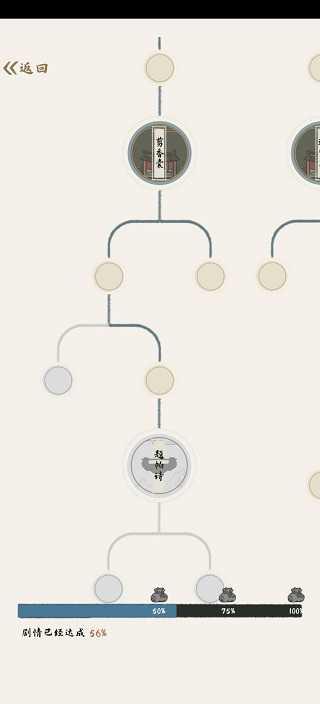 已经历的故事(大圆圈)点击后通过看广告可以重新选择故事走向。