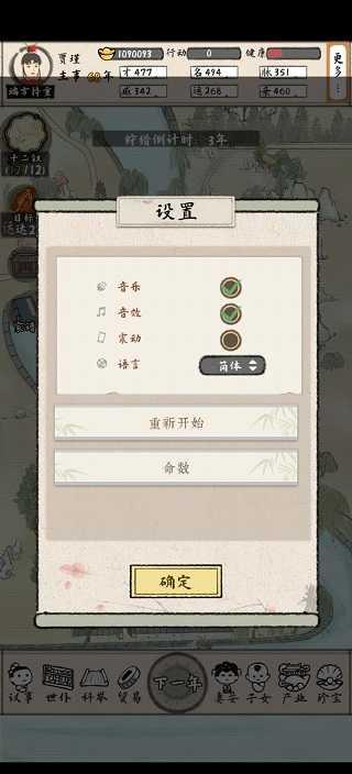 1、议事:能够让玩家自行选择处理方式,并且对应不同的数值加减。处理一件事花1000金。事件有重复。在开局3000金不是很多的情况下可以先不处理(不处理没有后果),买世仆和产业赚钱