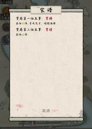 记录了你的人物的名字和主事时间,死后继承的话可以看到上一任的评价。