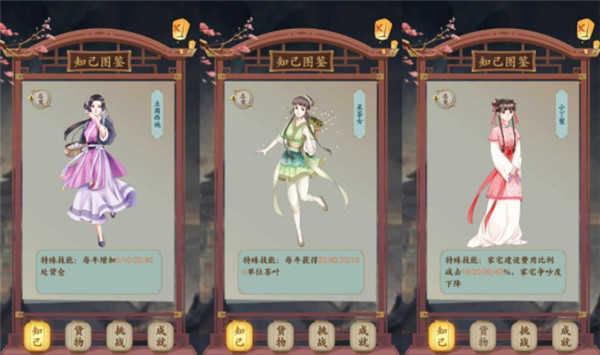 1、开局的时候我们有豆腐西施、采茶女以及小丫鬟3个知己可以选择,这里比较推荐优先考虑豆腐西施和采茶女,选择这两位可以提高游戏前中期的卖货收益。至于小丫鬟可以后面再娶,不过需要注意一下,想要娶小丫鬟,需要家中仅有一位伴侣,且没有家庭纷争。
