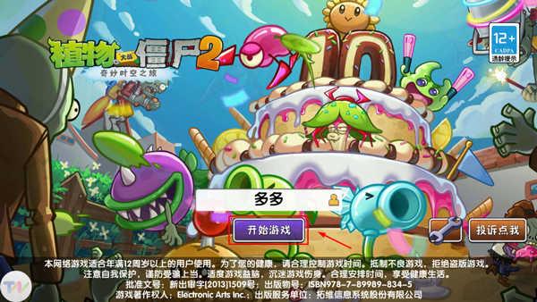 1、打开植物大战僵尸2十周年版本,点击开始游戏;